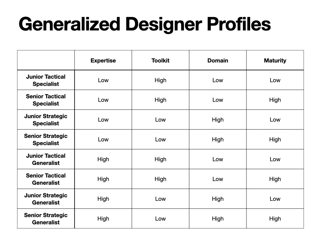 We can use a simple 4-factor designer profile model to assess where we are and where we want to go as a designer: